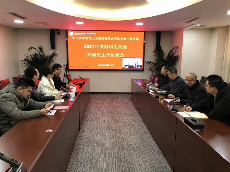 2022年2月23日,按照川水發(fā)展黨﹝2022﹞12號文件以及公司黨委要求,公司機關(guān)第三黨支部在成都總部和資陽辦公區(qū)以視頻方式召開2021年度組織生活會。公司黨委委員、總工程師汪輝德、副總經(jīng)理董蜀良以普通黨員身份參加會議。市場開發(fā)部部長、機關(guān)第三黨支部書記丁毅主持會議。