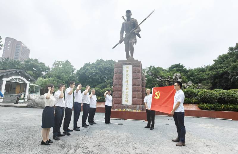 在“川軍抗日陣亡將士紀(jì)念碑”前,在支部書記付麟麗的領(lǐng)誓下,集體重溫入黨誓詞;公司領(lǐng)導(dǎo)夏永紅結(jié)合黨紀(jì)學(xué)習(xí)教育,以《做一名合格的共產(chǎn)黨員》為題作專題黨課報告,分享學(xué)習(xí)運(yùn)用黨的創(chuàng)新理論的收獲體會;青年黨員蘇凡以《踐行使命擔(dān)當(dāng),實干無悔》為題作黨課報告。