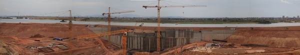 (二)廠房縱向圍堰及右導墻:第1#段澆筑到21.3m高程(設計頂高程27.5m),第3#段澆筑至24.7m高程,第5#段澆筑至23.2m高程,第6#段澆筑至18.9m高程,第7#段澆筑至23.5m高程,其余段已達到設計高程;