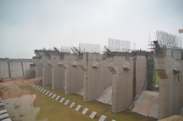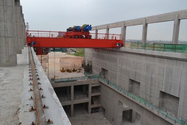 發電廠房進水口橋機安裝船閘全景閘壩上游閘壩下游