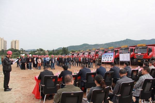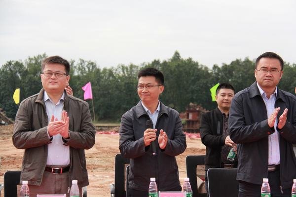 縣委常委、宣傳部長鐘成基(前排中)宣布開工令
