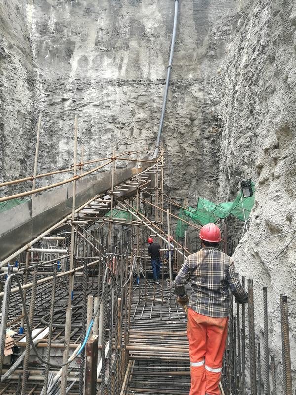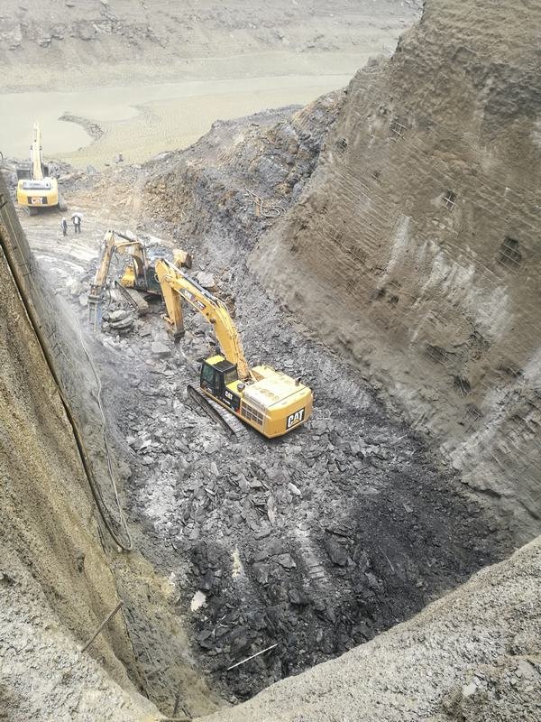 威遠引長入連取水樞紐工程項目部自3月14日進場以來,在工程局領導和局相關部門的關心和指導下,在業主、設計、監理、政府等各方支持協調下,項目部克服取水豎井邊坡高、開挖面狹窄、不能采取爆破開挖、村民長時間阻工等困難及不利因素影響,積極主動采取各種辦法解決困難,通過采取挖機鉆、破碎錘、大型勾機與挖掘機配合強制開挖石方的方式,堅持三班作業,經過近一個半月的艱苦奮戰,取水豎井于2018年4月27日下午開挖至設計高程,完成了20多米高的豎井后邊坡及45米高的深井開挖和支護,為工程的進一步推進奠定了堅實的基礎。