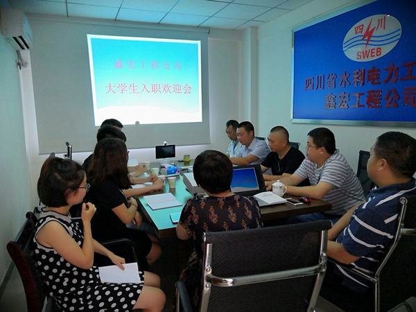 7月14日上午,鑫宏工程公司在都江堰辦事處舉行了大學生入職歡迎會。公司經理、黨支部書記毛偉、副經理曹軍、總工鄭中華、工會主席羅極川以及公司各科室代表參加歡迎會。