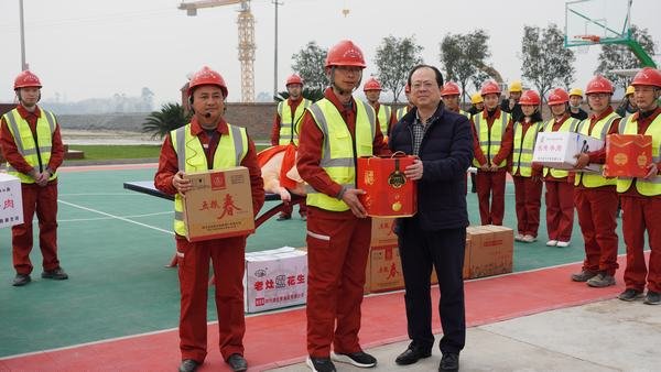 2021年2月8日上午,在新春佳節即將來臨之際,集團黨委書記、董事長鐘杰率集團黨委委員、董事、工會主席鄔清富,安全生產分管領導隆文非,辦公室主任唐克飛,工會副主席、宣傳群工部部長李佳俊、副部長李永靜,安全環保部副部長朱坤一行蒞臨工程局公司,看望慰問困難職工并深入施工一線慰問干部職工、檢查指導工作。