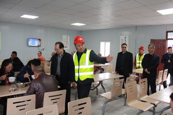 慰問困難職工后,鐘杰董事長一行又驅車深入岷江虎渡溪航電樞紐工程項目慰問一線干部職工并檢查指導工作,向春節期間堅守崗位的干部職工表示新春慰問和祝福,并送上慰問品。之后,在公司黨委書記、董事長代勇,總經理袁斌,副總經理茍仕聰、鄒世界及省水利設計院公司三分院副院長單智杰、項目設總鐘鴻等陪同下,察看了營地建設,接受安全告知后,深入到廠房前池、一期閘壩工程、拌和站等現場檢查指導工作,詳細察看和了解安全生產、進度質量、文明施工、環保水保等相關工作情況,對拌和系統布置、自動化程度、管理制度給予了肯定和贊揚,并對提前做好安全度汛等工作做出要求。