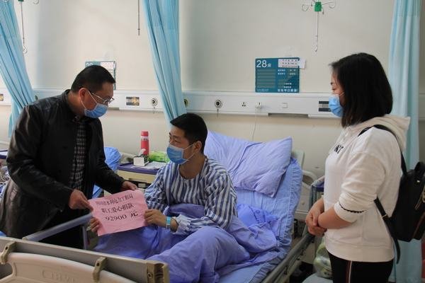 病魔無情,人間有愛。工作十分出色的曾榮章同志,因其身患嚴重的腎衰竭需要進行換腎手術導致家庭陷入困境。工程局對此十分重視,局工會聯合曾榮章所屬的四處工會向全局職工發起了“用您的愛心點燃希望”的倡議,全局廣大干部職工紛紛響應,慷慨解囊。涓涓細流匯成河,截止2018年3月26日上午,共收到全局干部職工捐款92900元。下午,代勇一行將全局干部職工捐贈的92900元愛心款,送到了一周前做完換腎手術剛從重癥監護室出來的曾榮章手中,并鼓勵他樹立信心,勇敢戰勝病魔,早日回到工作崗位多做貢獻。