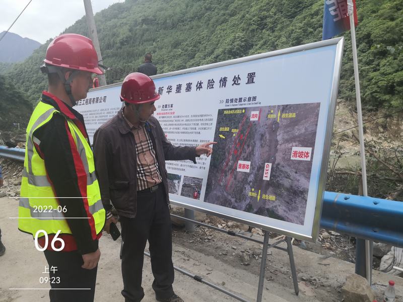 6月5日下午4時,工程局公司接“6.1”蘆山地震四川省水利廳搶險指揮部通知,第一時間啟動應急預案,公司總經理袁斌帶隊,迅即組織搶險隊員16人、1臺卡特SD7K及1臺山推320型推土機、1臺360KW發電機、2臺大型平板拖車、1臺設備物資運輸車、2臺后勤保障車星夜趕赴寶興電站新華壅塞體現場,參與壅塞體開挖泄流槽除險處置工作,6日上午8時投入現場參與應急搶險作業,目前正有序推進中。下一步,將由公司副總經理鄒世界任現場總指揮,下設三個工作及保障小組,認真按照省水利廳搶險指揮部工作部署和專家組搶險方案要求,在確保安全和應急保障措施到位情況下,爭分奪秒、全力以赴開展各項應急搶險施工作業。