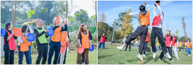 拍拍背、搭搭肩、劃一手拳、叫一聲大哥,奇思妙想的熱身小游戲引得大家爆發陣陣歡笑;隊旗、隊名、隊長、口號,隨機組成的團隊士氣凝聚,摩拳擦掌,“戰斗”一觸即發;飛盤9宮格、飛盤投籃、躲避飛盤賽、飛盤飛靶,一場場緊張又激烈的團隊較量正在上演,展現出一幅幅繽紛又難忘的美好畫卷。