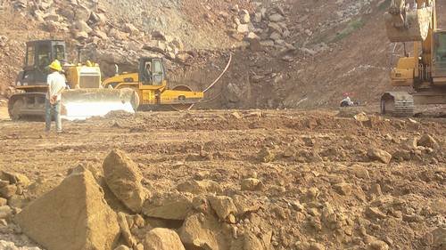 2015年3月月26日,我局承建施工的關刀橋水庫樞紐工程,大壩上游壩殼開挖基礎經建設各方聯合驗收合格后,壩基低洼部位開始進行找平填筑。