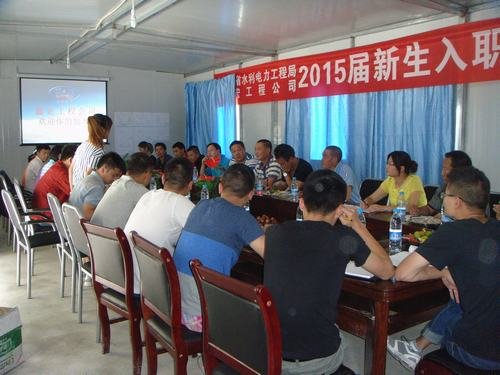2015年7月31日下午,為使新進大學生員工盡快習慣工地環境和感受到項目大家庭的溫暖,局鑫宏工程公司在固滴電站項目部組織召開了新進大學生員工歡迎會。公司領導、各項目部領導、各部門負責人及全體學生參加了會議。會議由新藏項目綜合部長李潔主持。