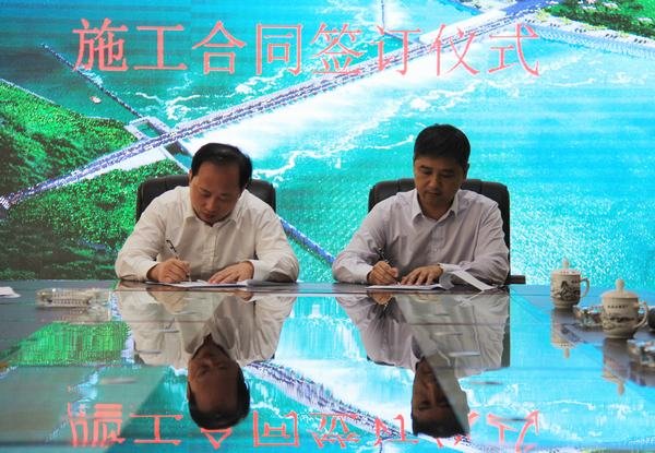 2015年10月28日上午,我局與江西龍頭山航電樞紐投資開發有限公司正式簽定江西龍頭山水電站樞紐工程施工合同,江西龍頭山航電樞紐投資開發有限公司董事長曾建斌,我局局長、黨委書記鄔清富分別代表建設方和施工方在合同文件上簽字。江西龍頭山航電樞紐投資開發有限公司副總經理陳建民及合同部門負責人胡木和、辦公室主任張傲宇,長江勘測規劃設計研究有限公司龍頭山水電站樞紐工程監理負責人及現場監理代表,我局黨委成員、副局長黃永沾,黨委成員、局長助理鄒世界,黨委成員、辦公室主任溫慶生,經營處處長丁毅,副總經濟師、經營處副處長唐德全,造價工程師傅蕓蕓出席簽訂儀式。