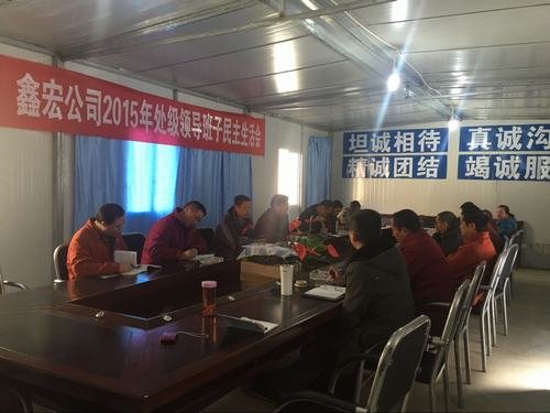 2015年12月08日,局鑫宏工程公司2015年度領(lǐng)導(dǎo)班子民主生活會在固滴項目部會議室召開。公司班子成員、全體黨員、各部門負(fù)責(zé)人及職工代表參加會議。會議由鑫宏公司黨支部書記甘曉華主持。