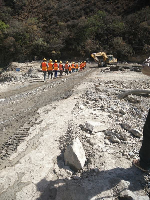 上午9:30,在指揮長甘曉華的號令下,演練活動正式開始。副指揮長鄭中華就暴雨強度、水位情況以及近期氣象情況做了簡明扼要的匯報,宣布啟動防洪應急預案。此次活動,模擬了洪水到來前組織壩上作業人員、施工機械設備的安全撤離,以及材料物資的搶險和安全轉移、上游圍堰填筑加固、搶險人員受傷救助等情景。在防洪警報拉響后,大家都保持著高度的警惕性和嚴肅性,壩上作業人員在應急小組長丁忠洪的安排下井然有序地快速撤離,迅速撤離到安全避險區。在基坑物資搶險轉移、圍堰加固、傷員救助演練中,大家都嚴陣以待、爭分奪秒、團結協作,表現出了一種難能可貴的團隊精神。