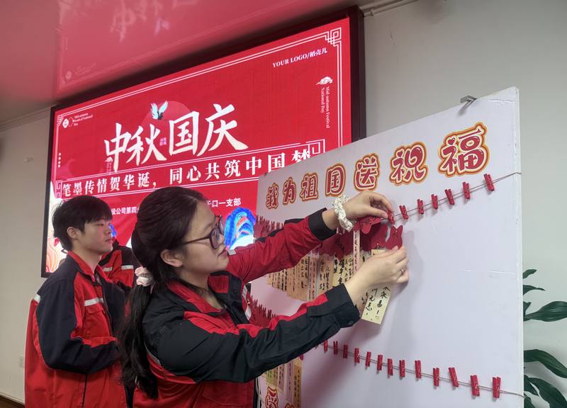 筆墨傳心意,同心賀華誕。在“我為祖國送祝福”環節,現場氣氛熱烈而溫馨,每位職工懷著對祖國的深切熱愛,在祝福卡片上認真書寫心中的祝福與期盼,并將卡片粘貼在祝福墻上,讓一張張卡片匯聚成紅色的“祝福矩陣”,為祖國獻上最真摯的禮贊。