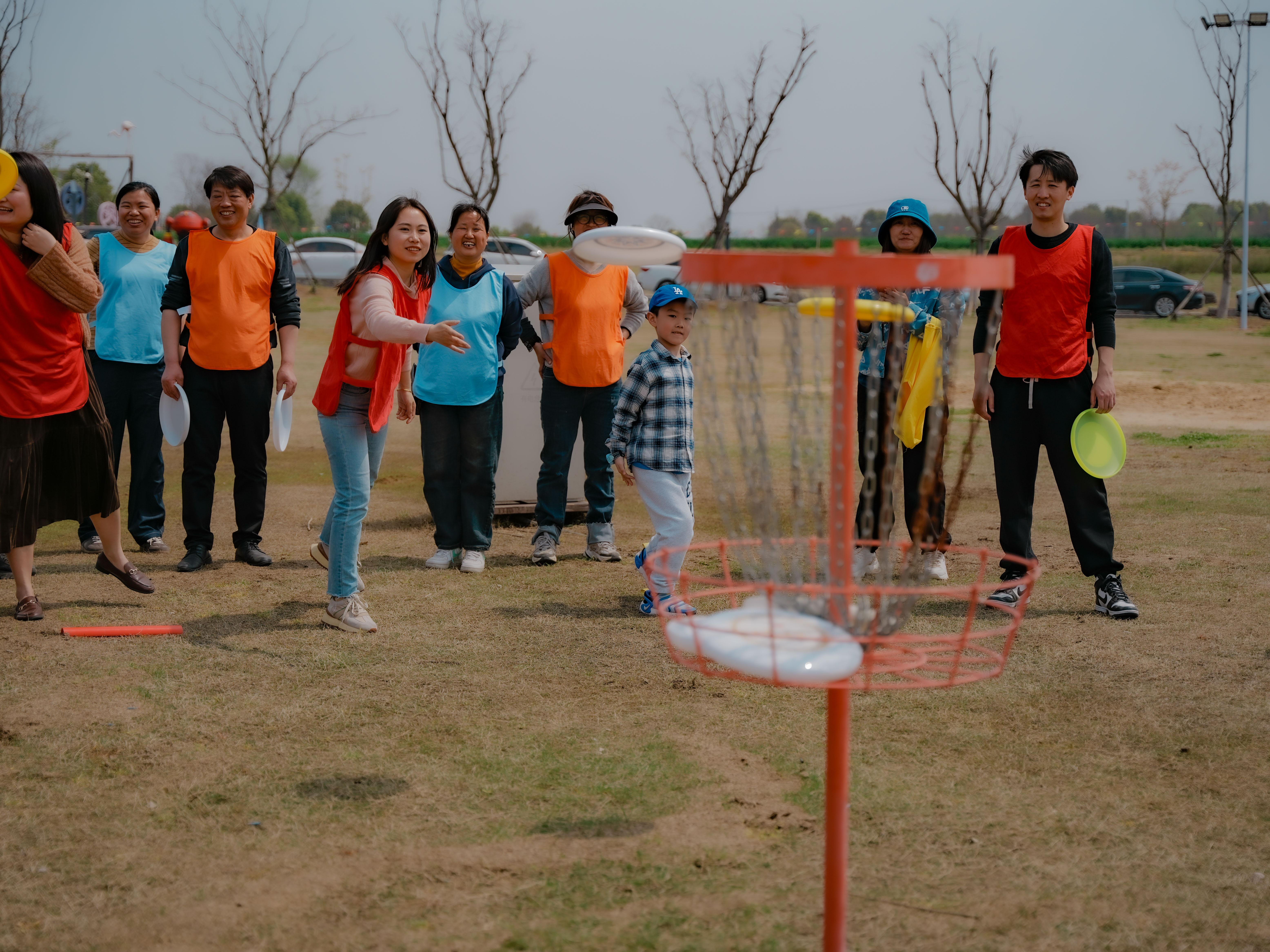在愜意閑適的湖邊徒步熱身后,大家在寬闊平整的綠茵草地上正式開啟此次戶外團建。活動開始,大家分成紅、黃、橙、藍四色小組,各組隊員在組長的指揮和布陣下,通力合作,角逐壘方塊、連連看、拋飛盤等團隊競賽的魁首。在這些充滿創意與趣味的活動中,合作與競爭巧妙融合,同事之間的距離被悄然拉近;當隊員不慎跌倒落后時,大家相互鼓勵,起身再戰;當團隊頻頻得分領先時,大家擊掌擁抱,歡呼雀躍,現場喝彩之聲此起彼伏,各隊成員密切配合,展現出高效一致的執行力和協助配合的團隊精神。