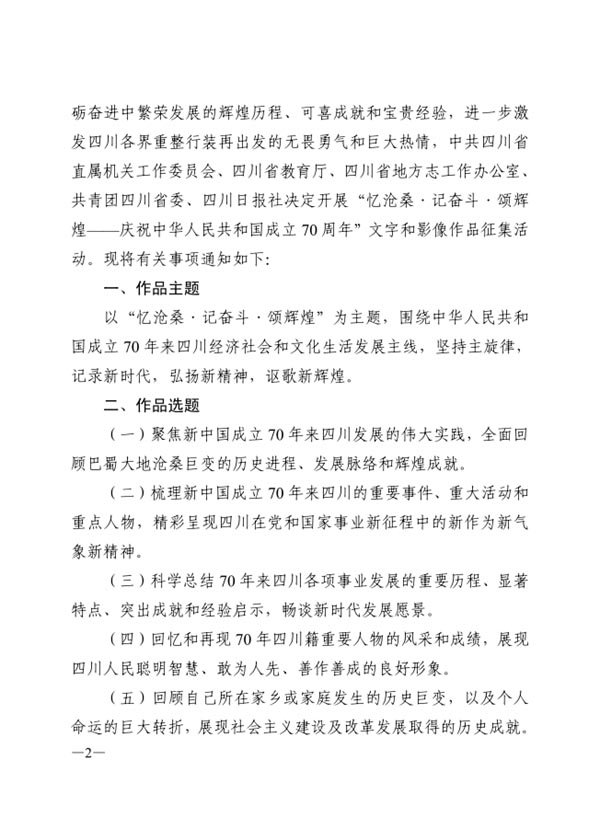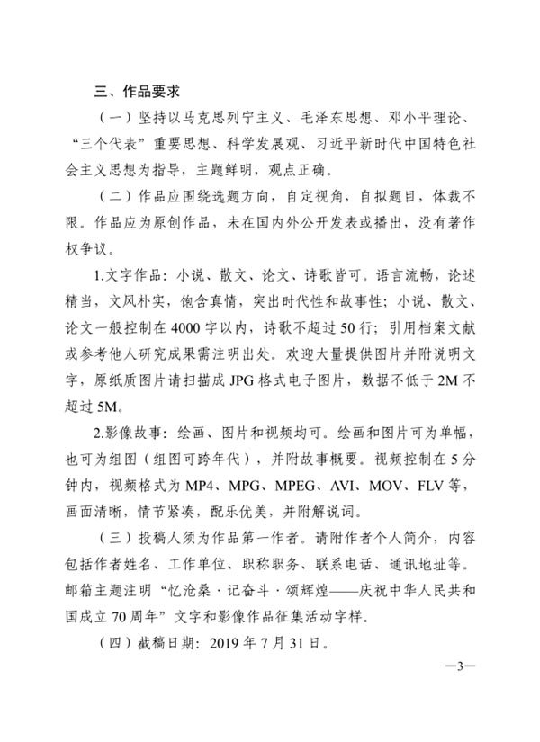 關于征集“憶滄桑 記奮斗 頌輝煌——慶祝中華人民共和國成立70周年”文字和影響作品的通知