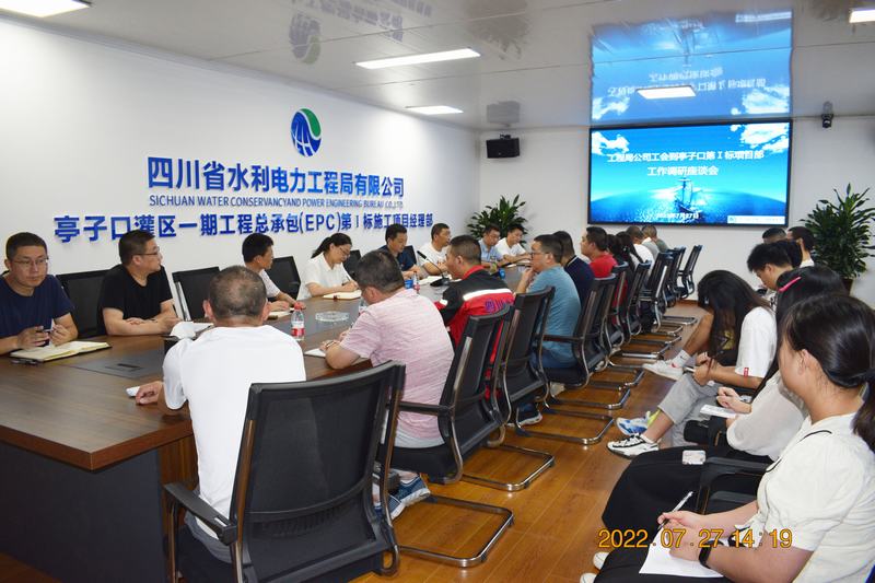 2022年7月27日下午,公司黨委委員、職工董事、工會主席夏永紅、工會副主席付麟麗到亭子口灌區一期工程總承包(EPC)第Ⅰ標施工項目經理部開展工作調研。項目部班子成員、各部門負責人、職工代表參加了調研座談。