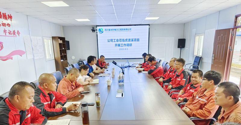 夏永紅一行在虎渡溪項目部會議室組織召開了調研座談會,認真聽取項目部工作情況及職工的建議與期盼,并深入發電廠房、船閘等施工作業部位察看項目施工情況。夏永紅代表公司及公司工會向戰斗在虎渡溪航電工程項目的全體干部職工致以親切慰問和衷心感謝,對項目部全體干部職工發揚“不懼艱險、不畏疲勞、無私奉獻、勇挑重擔”的水利鐵軍精神,變壓力為動力,提前完成節點目標任務予以充分肯定。付麟麗對項目部班子團隊及參建各單位干部職工付出的辛勞和取得的成績點贊,并結合全年工會工作計劃,提出堅持以人為本,促進安全生產;圍繞中心工作,開展勞動競賽;竭誠服務職工,做好困難幫扶;豐富文化生活,增強職工歸屬感四點意見。秦利就工會經費、會員會費的收繳及使用流程、相關注意事項作了強調。