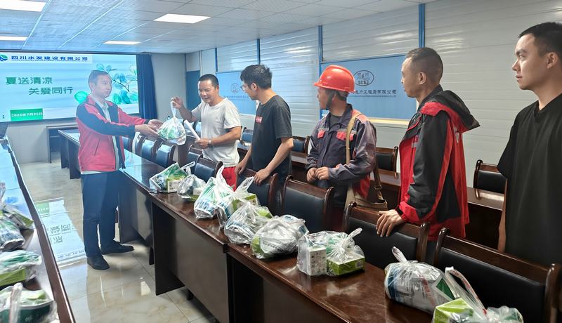 三分公司黨支部書記、經理毛偉代表三分公司向不畏高溫、堅守崗位的職工表達了關心和慰問。他要求項目部務必將職工生命安全和身體健康放在首要位置,以“時時放心不下”的責任感,嚴格落實高溫天氣下的勞動保護規定,加強防暑急救知識宣傳培訓,筑牢安全生產屏障,扎實落實高溫作業勞動保護措施,以更加飽滿的熱情、更加昂揚的斗志投入到工作中,全力確保各項目按時間節點順利推進。